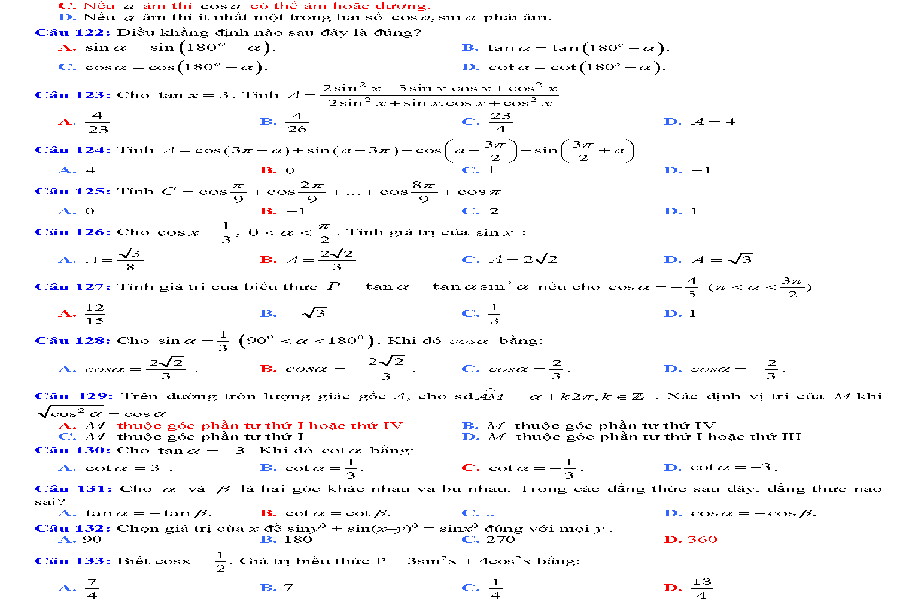 Trắc nghiệm công thức lượng giác