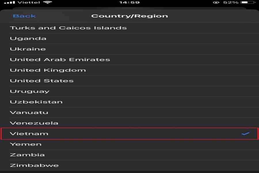 Bước 4: Chọn vùng App Store chuyển về là Việt Nam.
