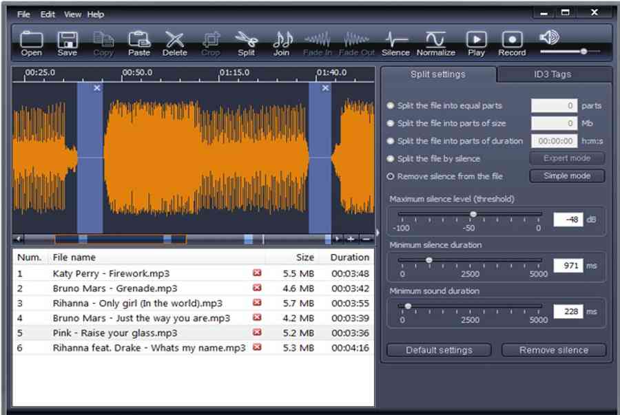 X-Wave MP3 Cutter Joiner thực sự là một phần mêm cắt ghép nhạc chuyên nghiệp bởi nó được tích hợp rất nhiều các tính năng hữu ích như MP3 Cutter, MP3 Joiner, Mp3 Normalizer, Mp3 Recorder thậm chí cả ID3 Tag Editor. Tuy nhiên chúng mình xếp nó cuối cùng vì đây là phần mềm cắt ghép nhạc trả phí.