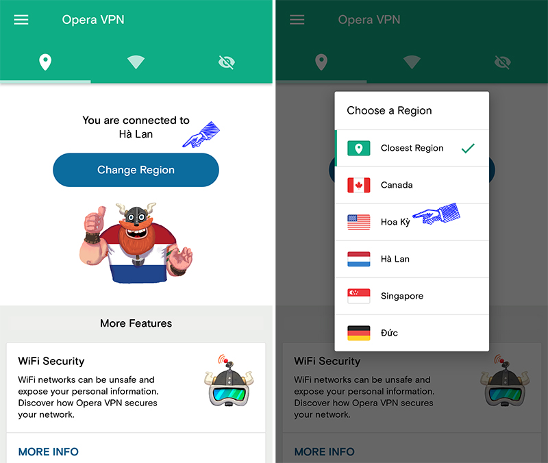 Cách thức đơn thuần để sử dụng là setup VPN để đánh lừa cơ cấu tổ chức nhận diện “ vùng địa lý ” từ đó giúp tải về ứng dụng một cách thuận tiện và đơn thuần hơn. Opera Free VPN là cái tên khá nổi tiếng có trên Google Play được mình xem xét lựa chọn. Cùng tìm hiểu thêm thủ pháp dùng android mê hoặc này nhé .