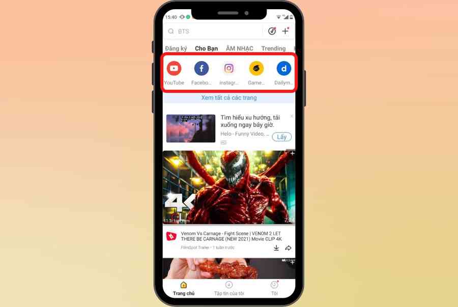 Bước 4: Nếu bạn muốn tải video từ một nền tảng nhất định thì khi vừa mở ứng dụng, hãy nhấn vào biểu tượng của nền tảng bạn muốn tải video về. Trong bài viết này mình sẽ thực hiện thao tác tải video từ Youtube.