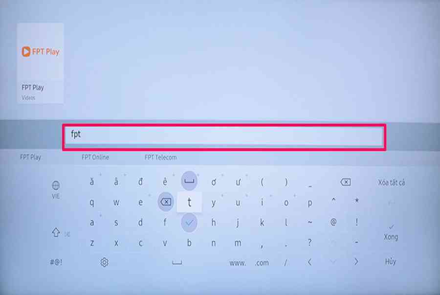 Bước 2: Bạn nhập tên ứng dụng muốn tải và khi tìm thấy, bạn chọn vào ứng dụng đó. Ở đây mình lấy ví dụ ứng dụng FPT Play.