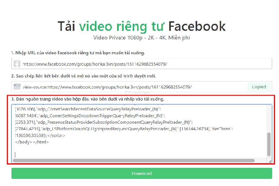 Bước 5: Dán toàn bộ mã nguồn vào trong ô thứ ba, chọn Tải xuống.