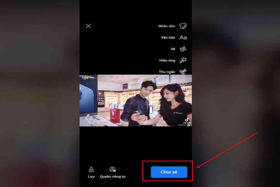 Trước khi đăng, bạn hoàn toàn có thể chỉnh sửa và thêm các hiệu ứng hoặc chú thích với bộ công cụ của Facebook. Khi hoàn tất mọi khâu chỉnh sửa, bạn hãy nhấn nút Chia sẻ ở góc dưới màn hình hiển thị để đăng lên Facebook.