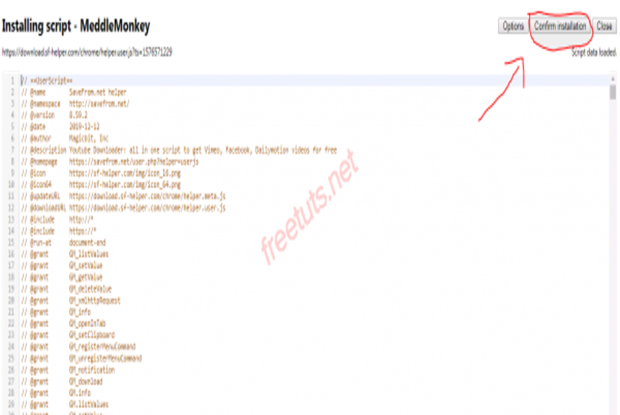 Bước 4: Tại đây, sẽ xuất hiện tab Installing script – MeddleMonkey, bạn nhấn vào nút Confirm Installation để xác nhận.