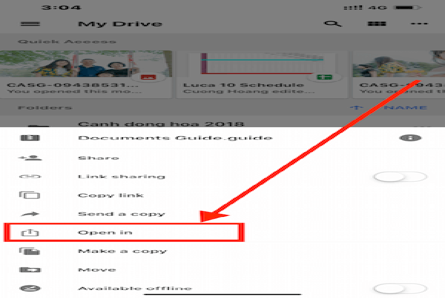 Bước 3: Tiếp theo, chọn vào chức năng Open In