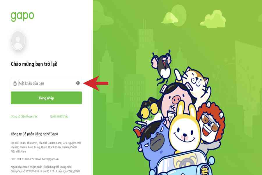 Bước 1: Để đăng nhập vào Gapo trên máy tính, bạn vào website tại đây. Sau đó, nhập số điện thoại và nhấn “Tiếp tục”.
