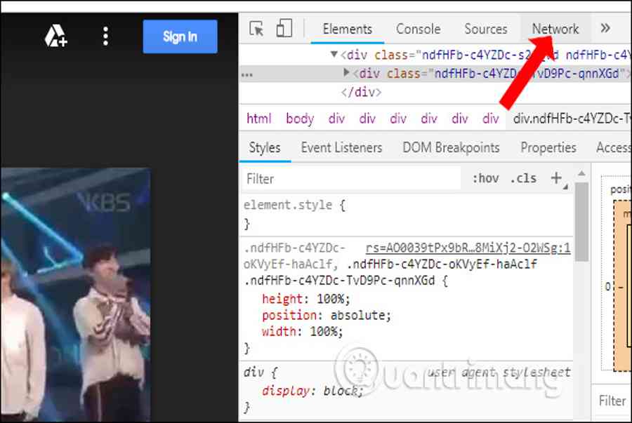 Hiển thị giao diện mới bên phải màn hình kích hoạt, click vào mục Network.