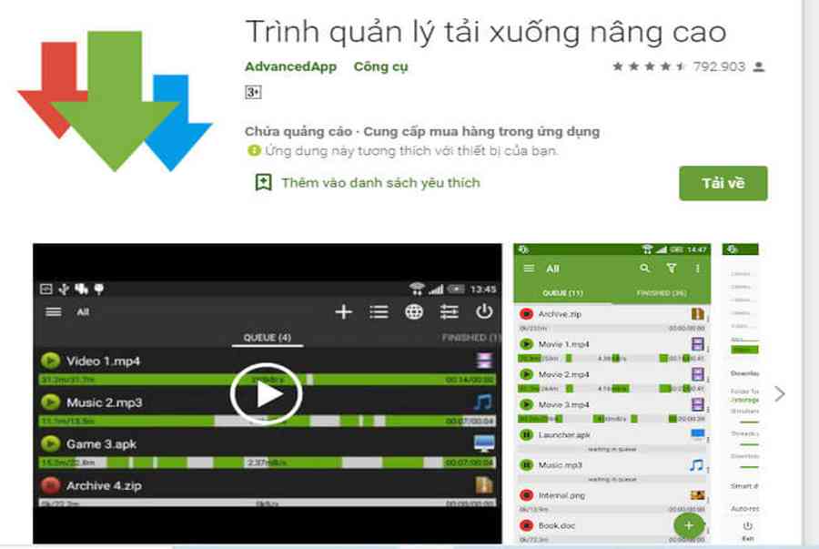 Advanced Download Manager là công cụ hỗ trợ tải nhiều loại định dạng video, âm thanh với chất lượng cao và hoàn toàn miễn phí. Lưu ý App này chỉ hỗ trợ hệ điều hành Android.