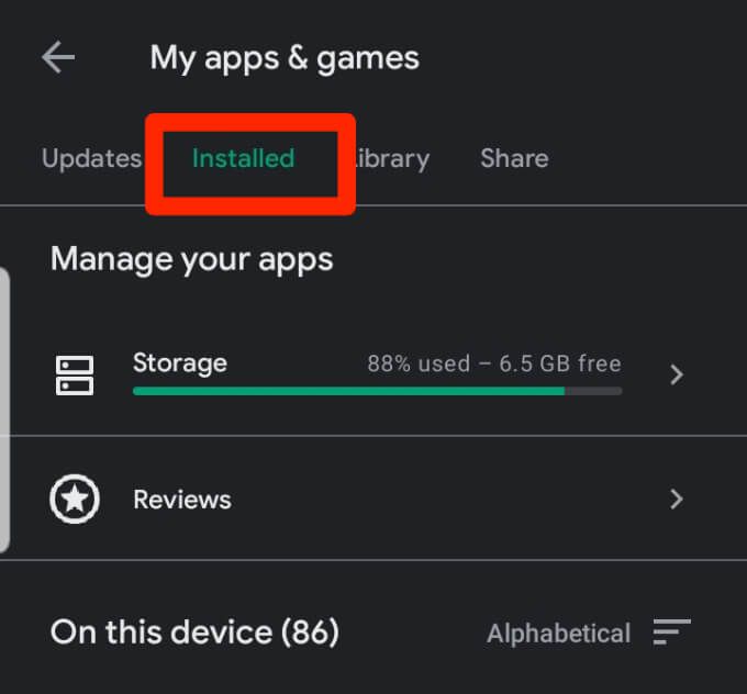 - bên trong Ứng dụng và trò chơi của tôi màn hình, bạn sẽ thấy bốn tab: Cập nhật, Đã cài đặt, Thư viện và Chia sẻ.