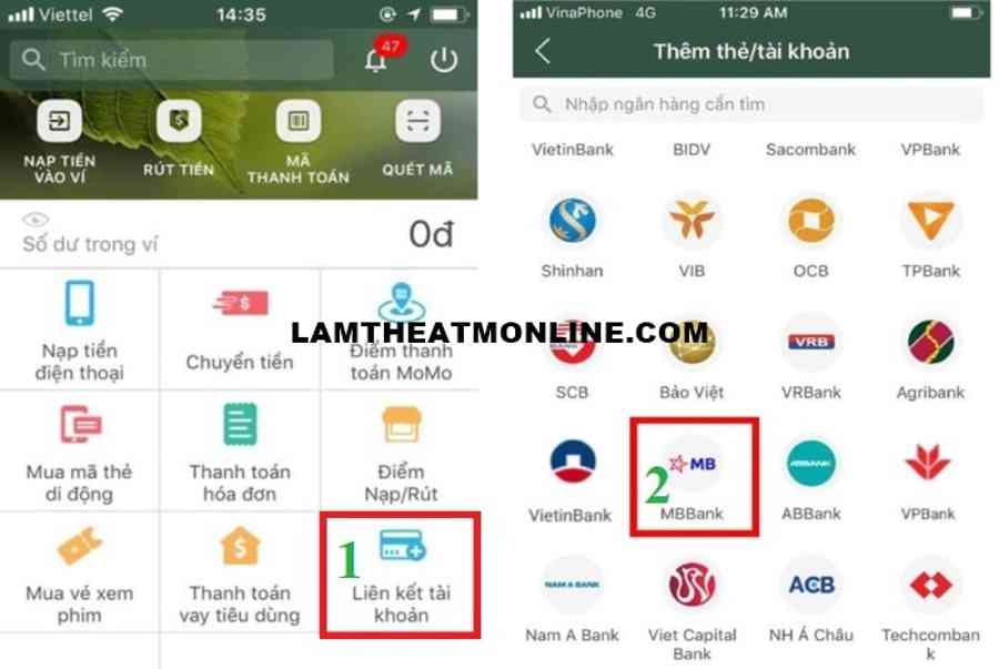 Cách liên kết MB Bank với MoMo online không tới ngân hàng