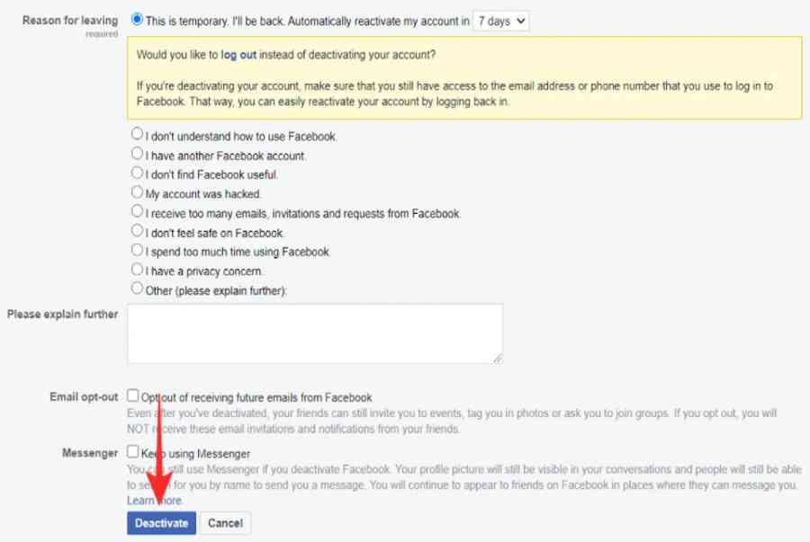 Cách khóa tài khoản Facebook và Messenger tạm thời