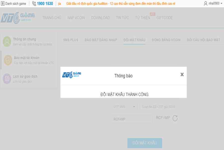 Hướng dẫn thay đổi mật khẩu VTC game