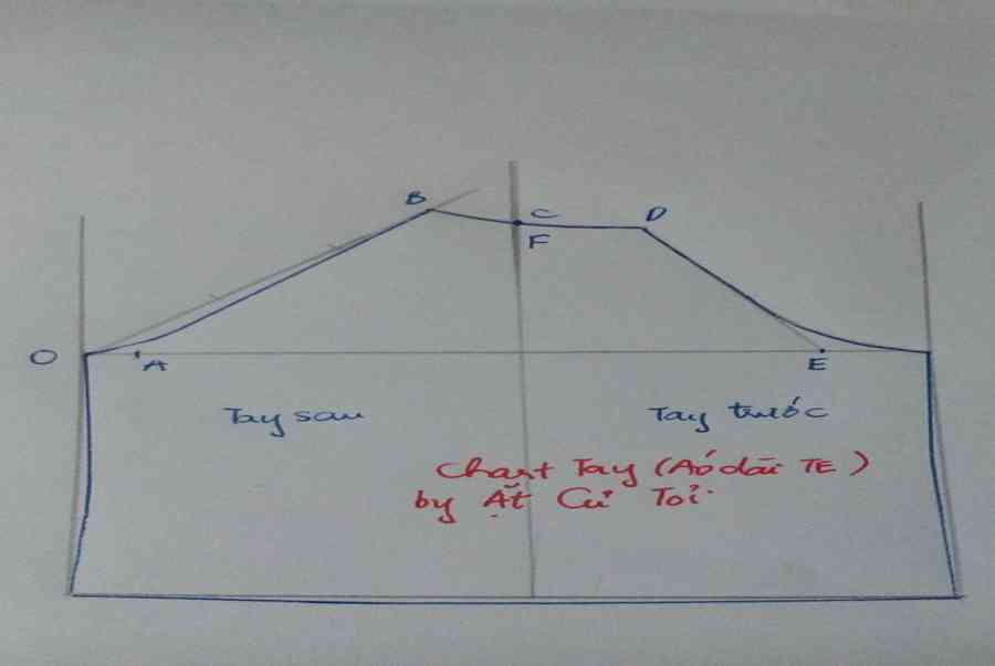 - Cắt bản vẽ: Trải phẳng phần tay áo vuông góc với đường cổ tay áo. Phần nách hãy cắt theo đường cong của bé và phía cuối nách hãy hơi đánh cong ngược chiều gần giống với hình chữ S.