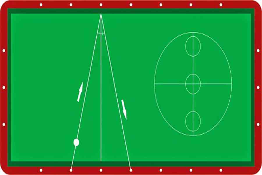 c) Trường hợp không để ép phê: Nếu đánh bi chủ không để ép phê thì sau khi bi chủ chạm vào băng, bi chủ sẽ dội trở ra một góc bằng với góc đánh tới (xem hình)