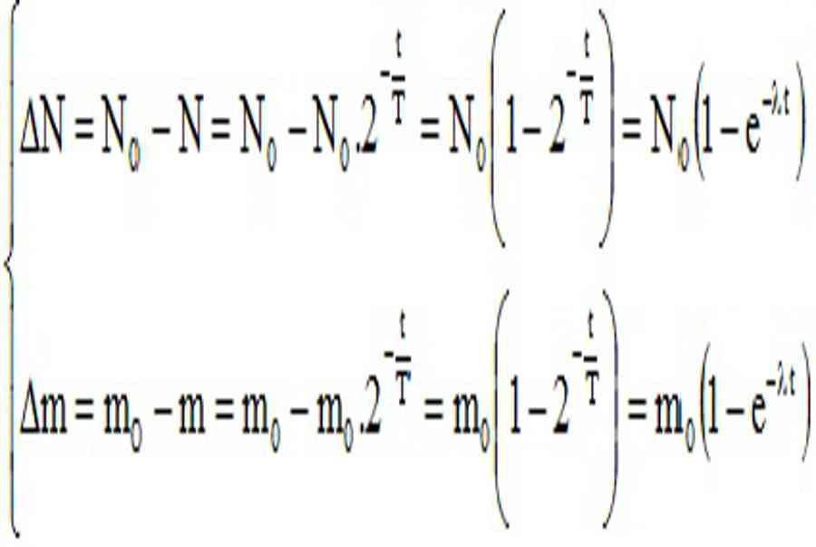 Từ đó, tỉ lệ số hạt nhânm khối lượng đã bị phân rã là