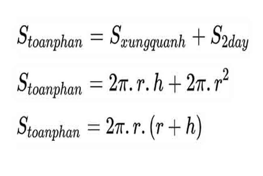 Công thức tính diện tích toàn phần bằng diện tích xung quanh cộng với diện tích của 2 đáy.