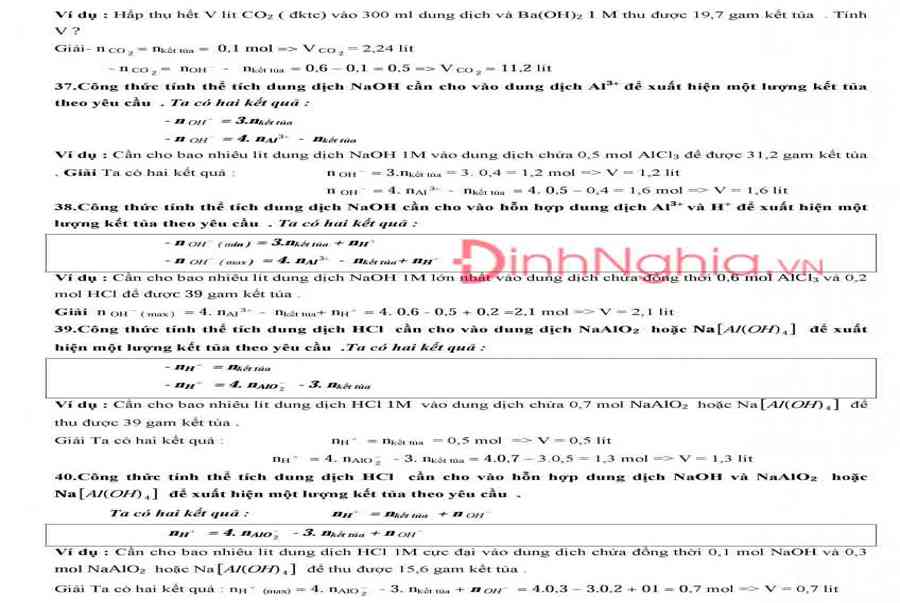 Công thức hóa học 12 về dd kiềm, kiềm thổ và nhôm
