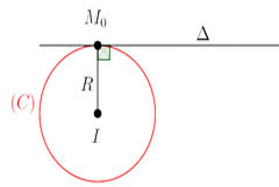Cho trước điểm \ ( M_0 ( x_0 ; y_0 ) \ ) nằm trên đường tròn ( C ) tâm I có tọa độ ( a ; b ), tiếp tuyến tại \ ( M_0 \ ) của ( C ) có phương trình : \ ( ( x_0-a ) ( x-x_0 ) + ( y_0-b ) ( y-y_0 ) = 0 \ )
