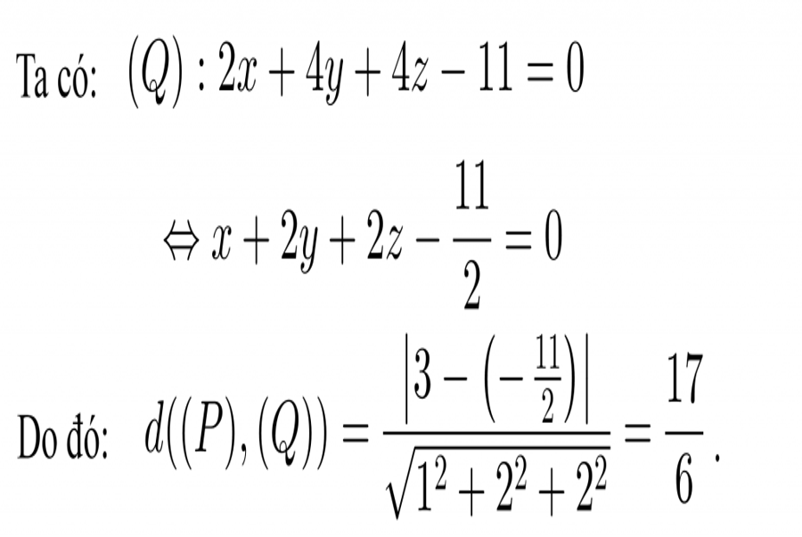 Khi đó giả sử M(α;β;γ) thuộc mặt phẳng (P) ta có: aα+bβ+cγ=-d. Khoảng cách giữa (P) và (Q) chính là khoảng cách giữa M và (Q). Do đó: