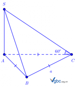Cho khối chóp S.ABC có đáy là tam giác đều cạnh a. Cạnh bên SA vuông góc với mặt dưới. Tính thể tích khối chóp S.ABC biết cạnh bên SC tạo với mặt dưới góc 60 º .