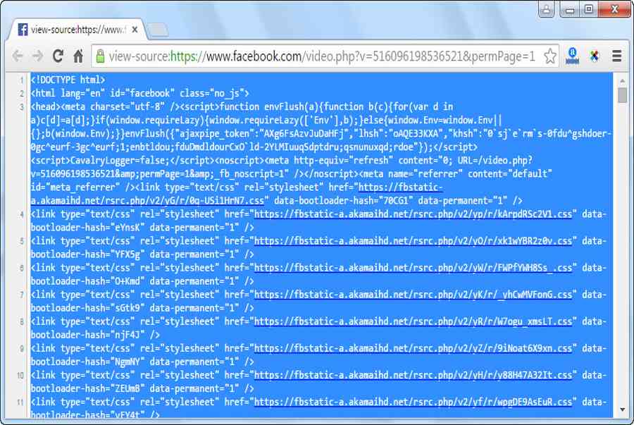 Tiếp đó, bạn chuyển sang trang Facebook chứa video cần tải, nhấn Ctrl + U để xem mã nguồn trang web đó.