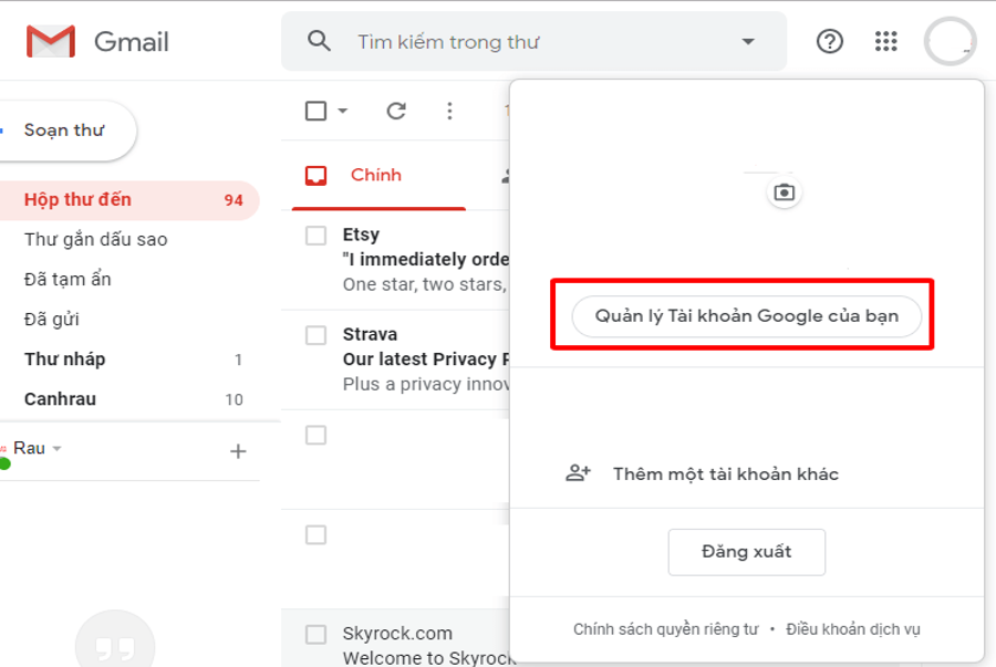Bước 3: Nhấp vào biểu tượng ảnh đại diện ở góc phải màn hình chọn Quản lý tài khoản của bạn (My account).