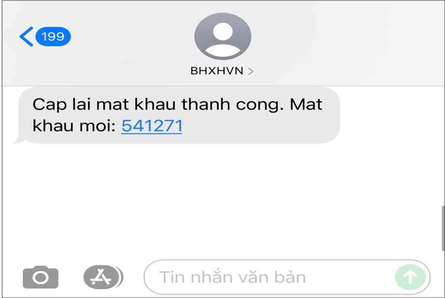 Trường hợp hệ thống kiểm tra số điện thoại gửi tin nhắn là của đúng mã số BHXH trong nội dung tin nhắn và có đăng ký giao dịch điện tử với cơ quan BHXH thì người dùng sẽ nhận được tin nhắn như sau: “Cap lai mat khau thanh cong. Mat khau moi: 123456”.
