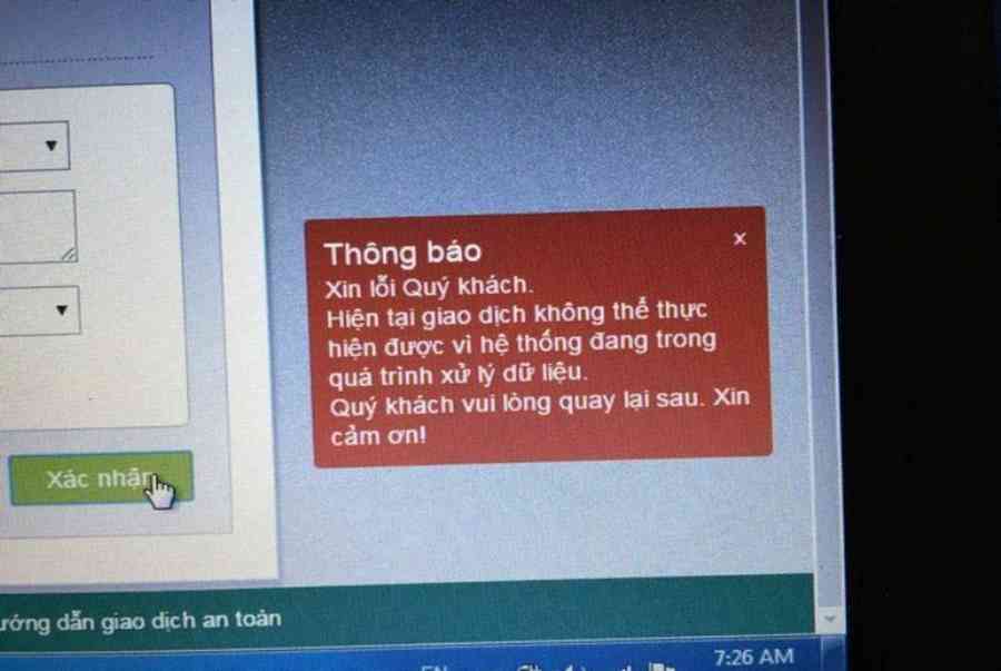 Lỗi tắc nghẽn hệ thống khi chuyển tiền qua Internet Banking