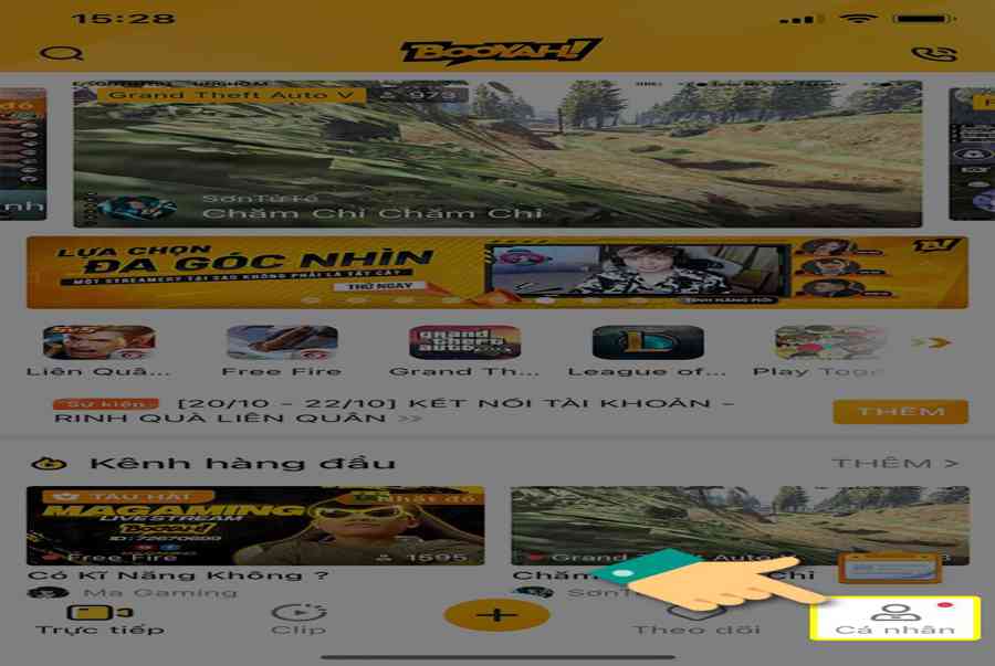 Bước 5: Khi đã đăng nhập thành công vào giao diện ứng dụng BOOYAH! Live bạn nhấn vào mục cá nhân bên dưới góc phải màn hình.