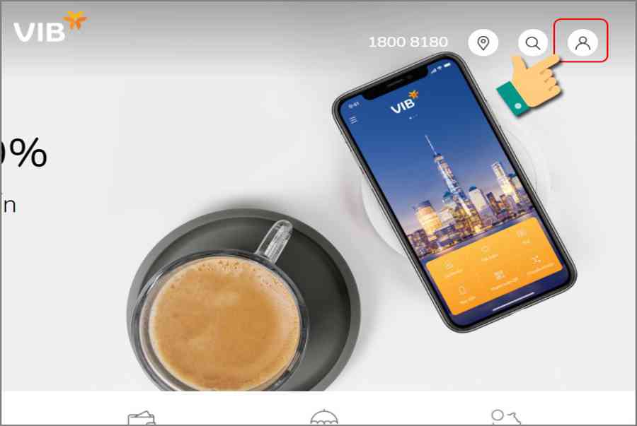 Truy cập trang web VIB và nhấn vào hình tượng tài khoản .