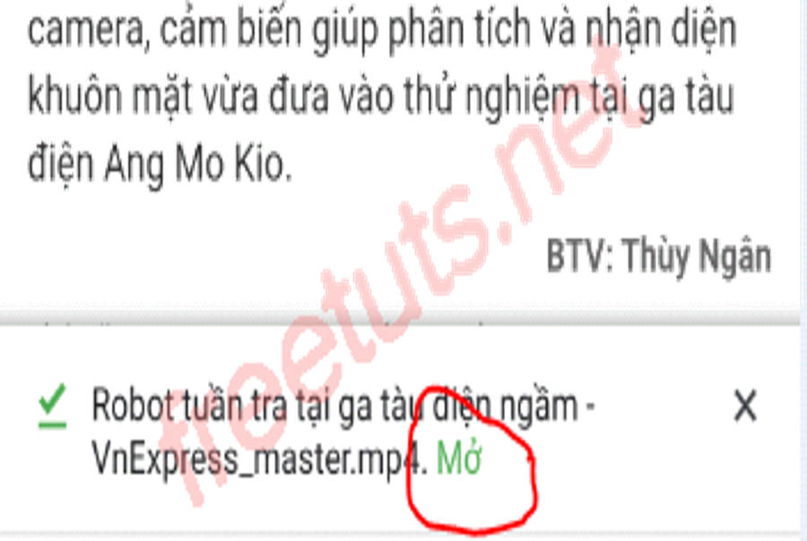 Bước 6: Sau khi tải video về máy hoàn tất, sẽ có dòng thông báo hiện bên dưới trình duyệt và bạn nhấn Mở để xem video vừa tải về.
