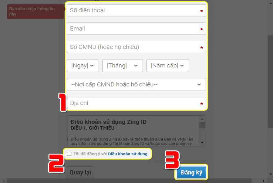 Điền thông tin xác nhậnNhư vậy bạn đã ĐK thành công xuất sắc thông tin tài khoản Zing ID để chơi 3Q Củ Hành .