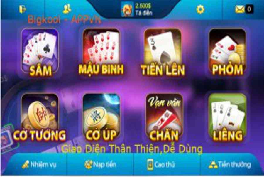 Game Bigkool không chỉ gồm có những game show bài quen thuộc như : Tiến lên Miền Nam, Phỏm, Ba cây, Xâm, Liêng, Xì tố, Poker mà ngoài những BigKool cũng là game đánh bài trực tuyến tiên phong có cả những game vui chơi vui nhộn như Xèng hoa quả ( chơi xèng ) và Chiếc hộp như mong muốn .