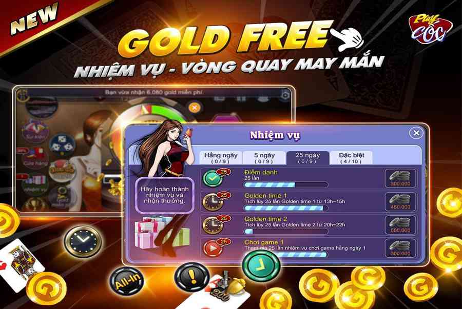 Ngoài ra, khi mới ĐK thông tin tài khoản, người chơi còn được nhận thưởng nạp và giftcode. Với số lượng lớn những khuyễn mãi thêm được update liên tục, ta sẽ có nhiều thời cơ chơi và thắng lợi tại playcoc hơn .