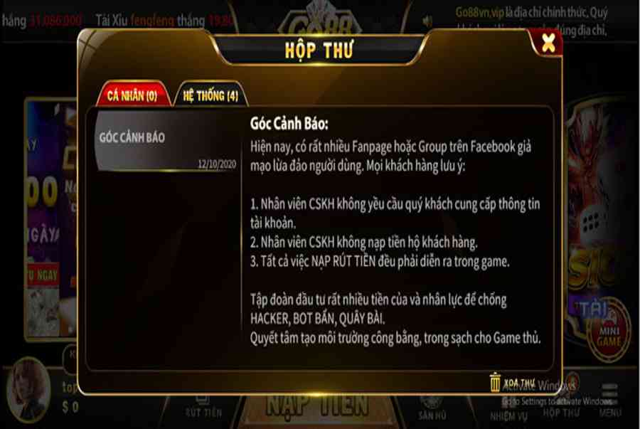 Tại GO88 luôn có thông tin cảnh báo nhắc nhở lừa đảo dành cho bạn, giúp bạn yên tâm chơi game .