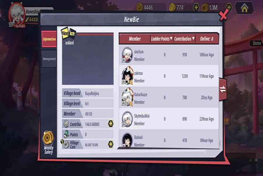 Bang hội trong InuYasha Awakening được gọi là Village là nơi link nhiều người chơi lại với nhau. Với vô số những hoạt động giải trí đầy mê hoặc mang về những phần thưởng đầy mê hoặc cùng vô số điểm góp sức. Điểm góp sức hoàn toàn có thể dùng để shopping những món hàng trong shop bang hội .