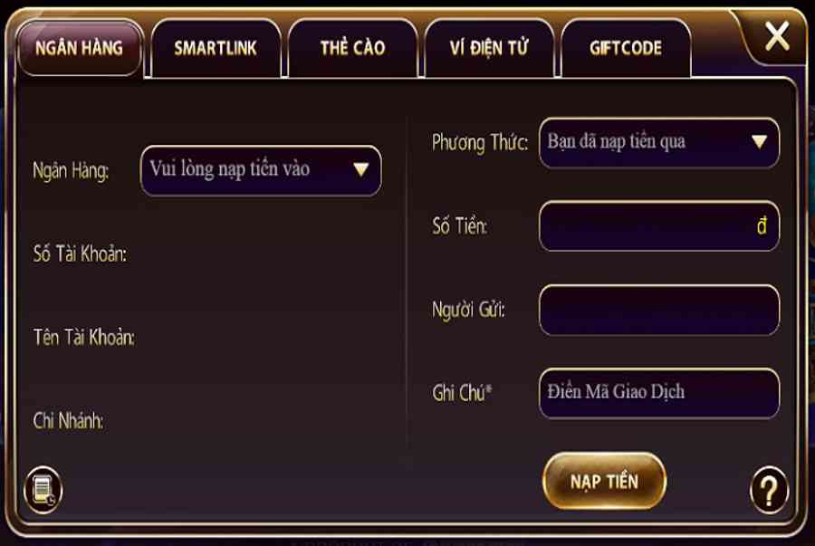 Có nhiều hình thức thanh toán giao dịch khác nhau được cổng game mang đến như qua thẻ cào, qua ví điện tử, qua smartlink. Cụ thể những thao tác nạp – rút tiền như sau :