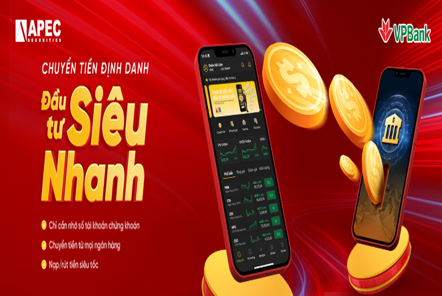 Từ ngày 06/03/2022, Công ty Cổ phần Chứng khoán APEC (APS) triển khai phương thức chuyển tiền qua tài khoản định danh để nộp tiền vào tài khoản chứng khoán (TKCK). Đây là chương trình APS hợp tác cùng Ngân hàng TMCP Việt Nam Thịnh Vượng (VPB). Khách hàng chỉ cần ghi nhớ tài khoản chứng khoán  và tiểu khoản, giao dịch nộp tiền vào TKCK sẽ được hoàn thành trong tích tắc.