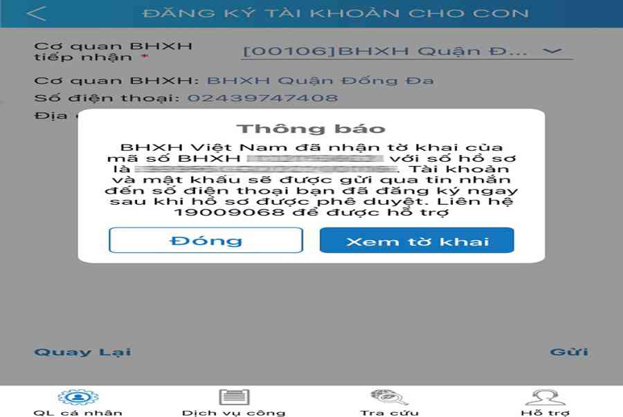 Nộp tờ khai thành công xuất sắc, ứng dụng sẽ hiển thị thông tin và gửi tin nhắn đến số điện thoại thông minh của người giám hộ ( trong tin nhắn thông tin gửi kèm đường dẫn để tải tờ khai ). Đồng thời, mạng lưới hệ thống sẽ tự động hóa gửi tờ khai vào email cá thể của người giám hộ ( nếu trong hồ sơ của người giám hộ có thông tin địa chỉ email ).