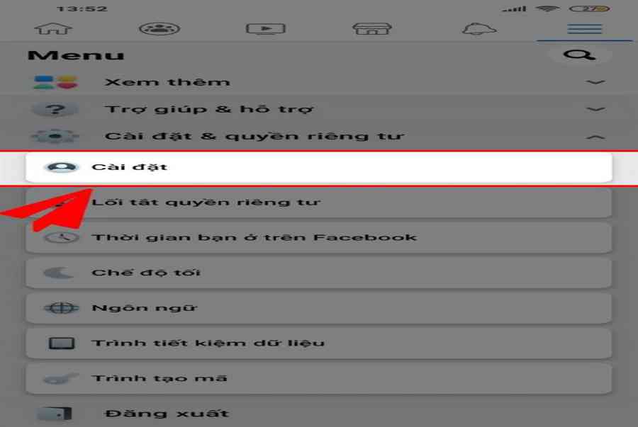 Bước 3: Lúc này mục Cài đặt sẽ hiện lên và bạn tiếp tục ấn chọn vào đó.