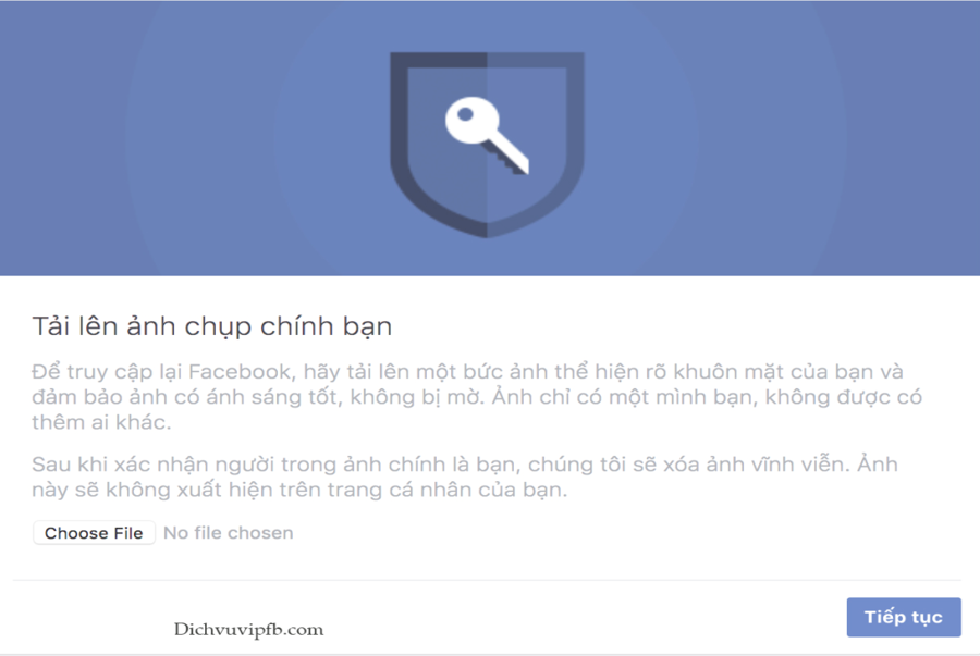 - Dòng 3 : Chọn tệp : Bạn chụp ảnh màn hình mà Facebook báo tài khoản của bạn bị vô hiệu hoá cho cho Facebook.