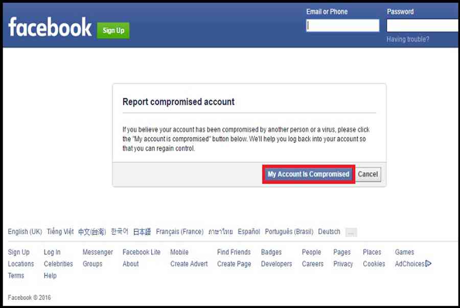 Tài khoản Facebook bị hack dẫn đến nhiều mối nguy khốn khác nhau như kẻ xấu hoàn toàn có thể tận dụng Facebook của bạn để mượn tiền người thân trong gia đình bạn hữu mà bạn không hề hay biết. Để tránh gặp phải những trường hợp xấu nhất hãy theo dõi ngay cách lấy lại tài khoản Facebook bị hack mật khẩu này nhé .Đầu tiên, hãy truy vấn vào trang báo cáo giải trình tài khoản bị hack của Facebook tại đây .