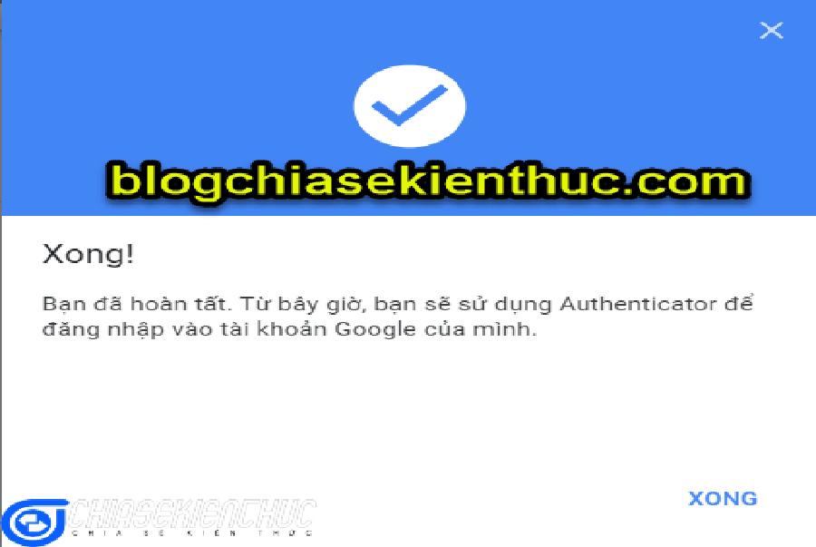 + Bước 5: Chọn Xong để kết thúc quá trình thiết lập bảo mật 2 lớp bằng ứng dụng Authenticator.