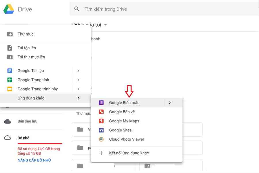 Bạn có thể tạo ra các bảng khảo sát ý kiến, thu thập dữ liệu từ Google Drive bằng việc mở tạo File và chọn “Google biểu mẫu” sau đó làm theo các bước hướng dẫn. Với tính năng này, bạn có thể kết hợp mọi loại hình câu hỏi như văn bản đơn thuần, chọn câu trả lời có sẵn (với hộp kiểm) hoặc nhiều loại hình khác.