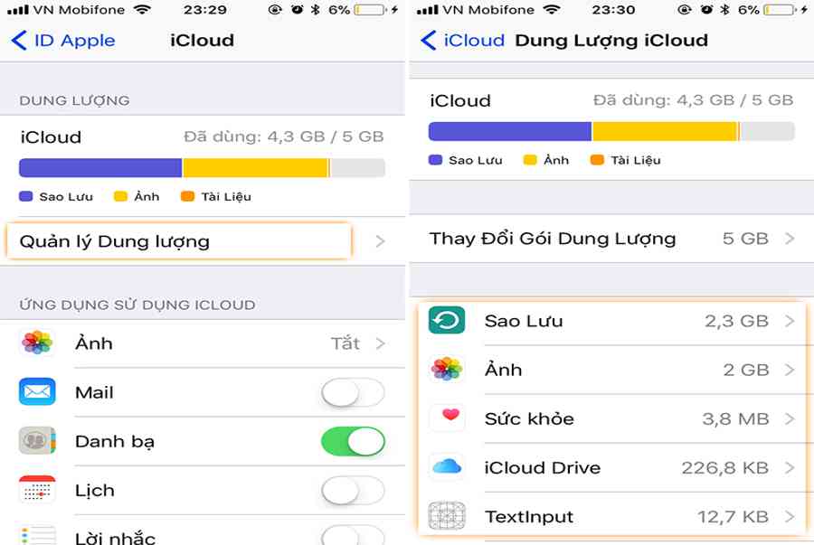 Mặc định Apple sẽ cung ứng cho bạn 5 GB để tàng trữ, đồng điệu thông tin cá thể như : email, tin nhắn, danh bạ, ghi chú, tài liệu ứng dụng, ảnh … Tất nhiên 5 GB là không khi nào đủ cả, vì vậy bạn cần can thiệp và vô hiệu bớt tài liệu ít dùng đến .