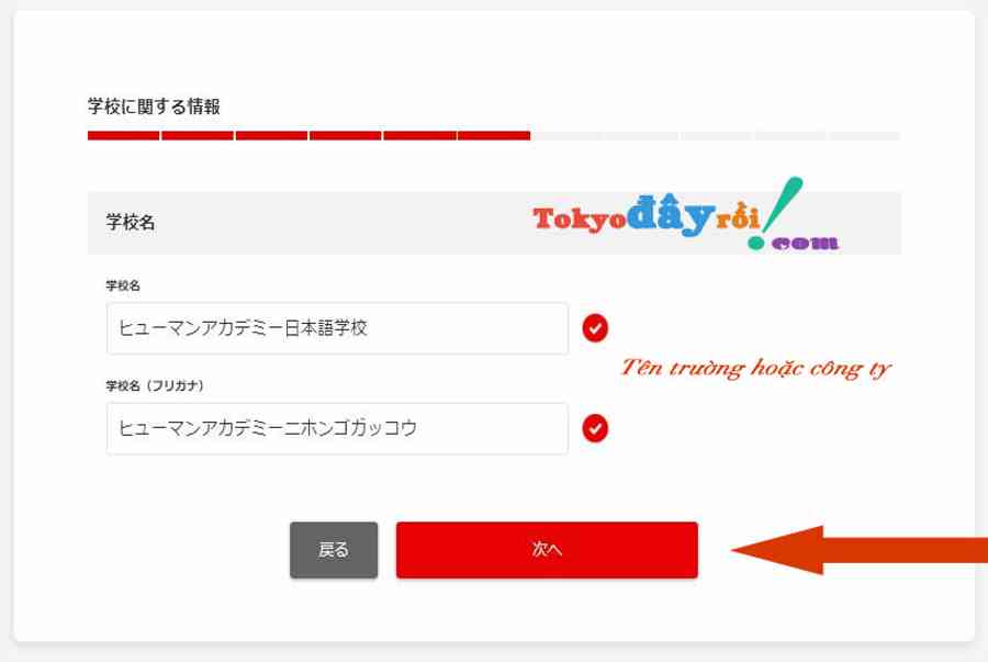 Nhấn chọn 次へ để liên tục