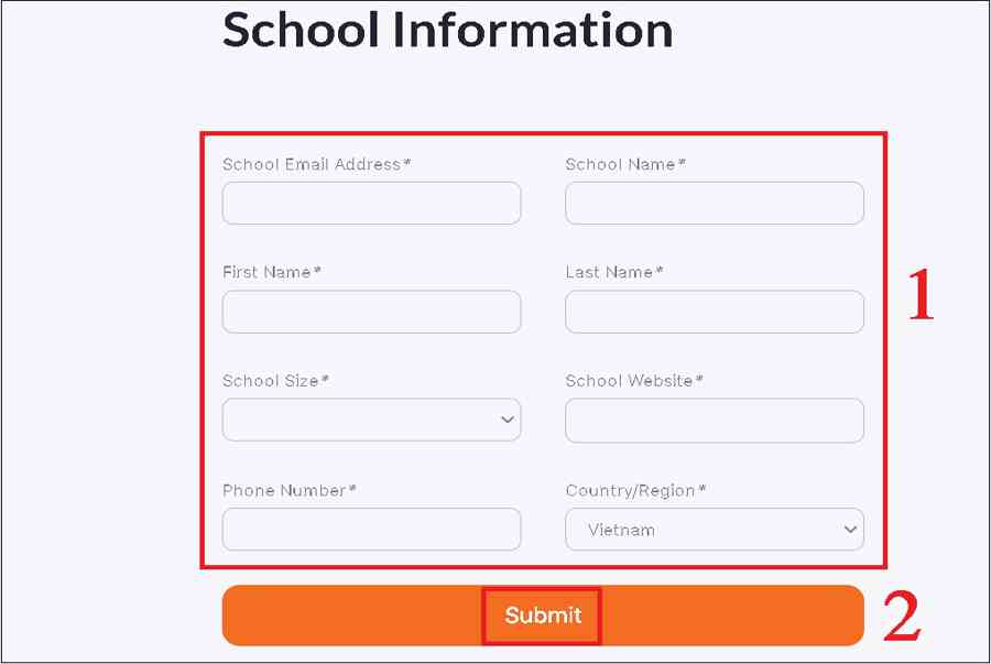 • School Email Address: Địa chỉ email của trường, nơi đang công tác, giảng dạy,…