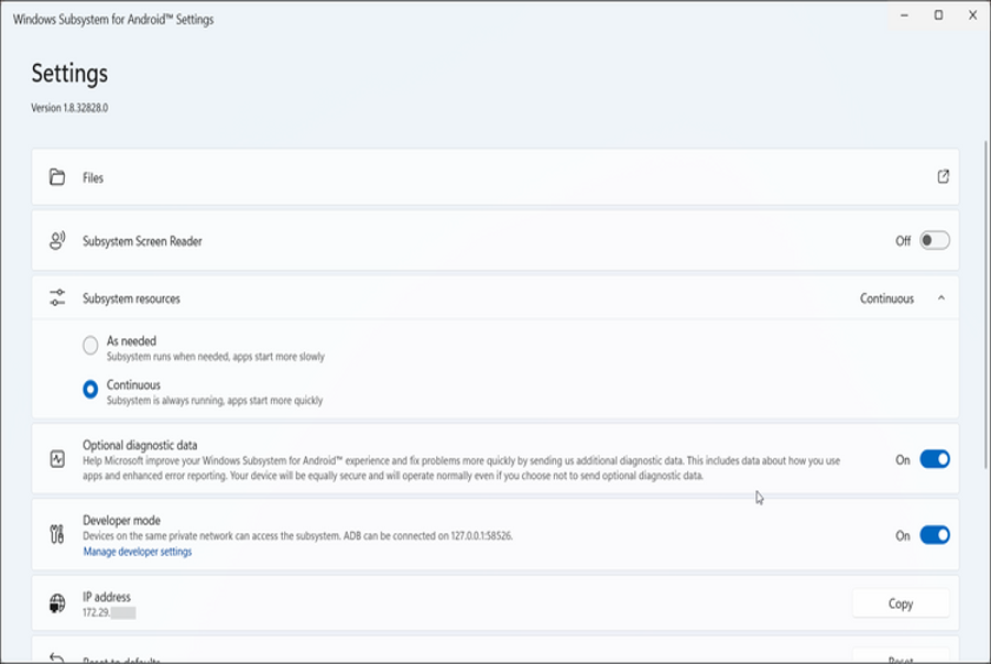 - Sau khi cài đặt thiết lập, bạn có thể tiến hành cài đặt ứng dụng Android trong Windows 11 bằng APK ứng dụng.