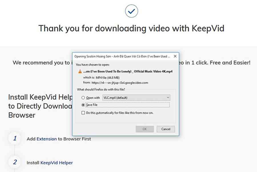 Trên là hướng dẫn cách tải những tập tin truyền thông mà không cần dùng đến ứng dụng, chúc những bạn thành công xuất sắc với KeepVid. com .